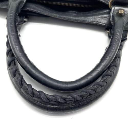 今回ご相談いただいたのは、バッグの機能性とデザインの要であるハンドル部分のダメージです。お写真をご覧いただくとわかる通り、ハンドルを縁取るように編み込まれた装飾用の紐が経年劣化により損傷しています。ハンドルは、バッグの中で最も頻繁に手に触れ、常に摩擦や荷重がかかる箇所です。特にこのモデルで使用されている編み込み紐は、繊細な質感を出すために柔らかな素材が使われており、長年のご愛用による手の汗や脂、そして動作に伴う擦れによって、徐々に繊維が弱くなってしまいます。この日常的な負荷の積み重ねにより、紐の一部が完全に断裂して中から繊維が飛び出してしまっています。この状態は見た目の美しさを損なうだけでなく、実用面でもリスクがあります。紐の編み込みが解けて緩んでしまうと、ハンドル自体の強度が不安定になり、ハンドルの革にまで過度な負担がかかり、型崩れや亀裂を引き起こす原因にもなりかねません。そうなってしまうと、ハンドル本体の交換が必要となる場合もあります。深刻な事態を防ぎ、バレンシアガらしいエッジの効いた佇まいを維持するために、今回は傷んだ紐の全交換を行っていきます。